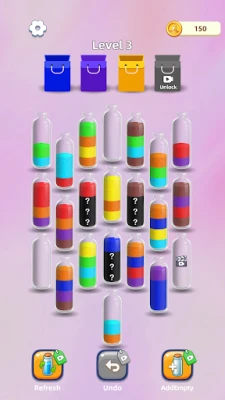 Upptäck "Color Sand Sort", ett roligt och avkopplande spel där du sorterar sand. Välj olika glasflaskor och byt plats på färgad sand för att fylla varje flaska. Samla en mängd unika korkar och lås upp spännande nya sandflaskor för en kontinuerligt engagerande utmaning.