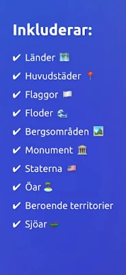 GeoExpert täcker in ett brett spektrum av geografiska element, från huvudstäder och flaggor till de mest avlägsna öarna och de högsta bergen. Med dedikerade kartor över länder som Sverige, USA, Frankrike, Tyskland, Ryssland, Spanien, Italien, Kanada, Nederländerna och Förenade kungariket, kan du dyka djupt ner i specifika regioner. Ett omfattande studieläge ger dig detaljerad information om varje land och stat, inklusive yta, befolkning och andra intressanta fakta. Vår strävan efter precision och att ständigt hålla innehållet uppdaterat garanterar att du alltid har tillgång till korrekt och relevant data.