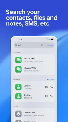 Med Global Search är möjligheterna obegränsade när det kommer till att upptäcka information på din telefon. Genom en enkel gest från startskärmen får du tillgång till en kraftfull sökmotor som genomsöker alla delar av din enhet. Hitta lokala kontakter, specifika appar, dokument, systeminställningar, anteckningar och kalenderhändelser med enastående precision. Denna tjänst samlar och presenterar all din data på ett organiserat sätt, vilket transformerar din mobila enhet till en mer intuitiv och produktiv arbetsyta.