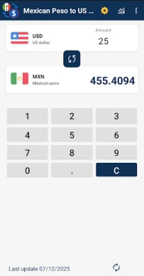 Upplev enastående enkelhet när du hanterar växlingar mellan mexikanska peso och amerikanska dollar. Med denna intuitiva applikation omvandlar du belopp blixtsnabbt, oavsett om du behöver konvertera från MXN till USD eller vice versa. Skriv bara in önskat belopp och se resultatet omedelbart, vilket eliminerar onödig väntetid och förenklar dina finansiella beräkningar.