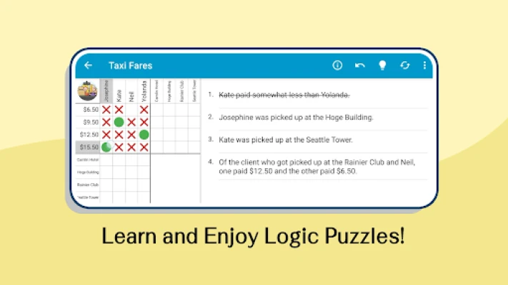 För att göra din upplevelse så smidig och intuitiv som möjligt, har Logic Grid Puzzles integrerat flera användbara funktioner. Med Auto-X kan du snabbt markera uteslutna alternativ, medan vår ångra-funktion i flera steg låter dig experimentera fritt utan rädsla för att göra permanenta misstag. Skulle du hamna i ett riktigt dödläge, kan du enkelt kontrollera rutnätet för eventuella fel. Appen omfamnar också moderna Android-funktioner, såsom justerbar textstorlek och ett bekvämt mörkt läge, för att säkerställa att varje spelsession är anpassad efter dina preferenser.